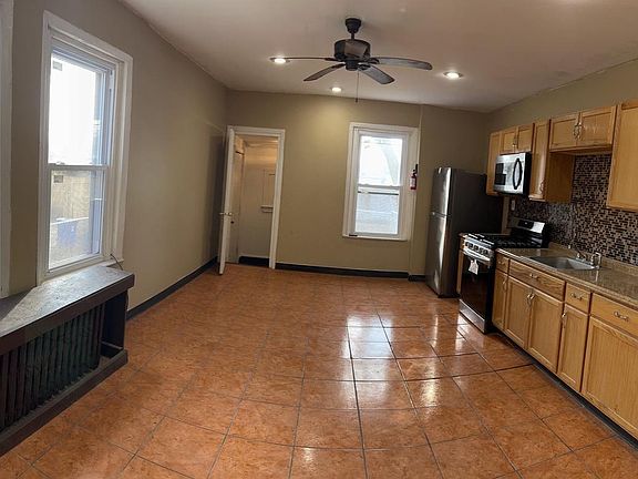 This property offers off street parking for multiple vehicles , private rear yard, new vinyl windows, new exterior stone work, and rear egress bilco doors . The enclosed sun porch opens into a huge living / dining rm combo area with recess lights and a newer ceiling fan. Through the arched doorway you will be mildly surprised by the large eatin kitchen which has new stainless steel appliances and rear yard access. The second floor offers 3 spacious bedrooms with new plush carpet and closet space. The 3 piece bathroom has ceramic tile , pedestal sink, and new decorative lights, The basement is huge and offers an opportunity to finish it on your own. There is a new washer and dryer.
