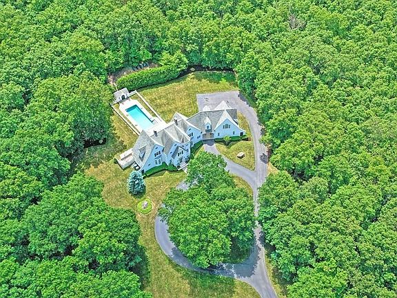 Offer accepted. Please DO NOT attempt to Drive By long private road. Ty. Nestled within 21 acres of privacy this timeless Custom Designed Shingle Style Home is Beautiful & Unique. Elegant but Casual living spaces flow throughout. The dramatic wainscot lined entry leads your eye directly though the 2 ½ story Vaulted & Beamed Great Room, on to the Sun Room and out to the perfectly aligned heated saltwater Swimming Pool. A Chef's kitchen features commercial grade gas cook top w/grill, double wall oven, 42" Subzero refrigerator & 2 dishwashers. A highly Versatile Floor Plan provides 1st Floor & 2nd Floor Master suites. A total of 5 Bedrms, 5 1/2 baths & 3 Fireplaces. The west wing of the home offers a private back stair entrance & a fully equipped kitchen. Lower Level offers a Home Theater, a Gym & a Laundry Room with space for multiple washers. Over-sized garage with Porte-Cochere & circular driveway. This home was built with exceptional attention to detail & quality. Equestrian Potential