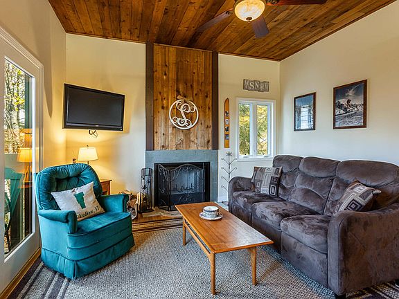Affordable Okemo Trailside 3 bedroom plus den end unit. In great condition and ready to be your ski get-a-way this season. Updates include kitchen, main level bathroom and a brand new wood burning fireplace installed in the Fall of 2025. On 2 levels, there is an open kitchen/dining/living area, bath and bedroom on the main level, 2 bedrooms, bath, laundry and a cozy den finish the lower level. The condo is nicely furnished, just walk in, light the fire and pour yourself a glass apres ski, for a warm relaxing evening. Walk to the Sachem Trail to enjoy the trails, and walk back for your down time. Trailside has a summer pool and tennis courts to get you here in the Summer months.