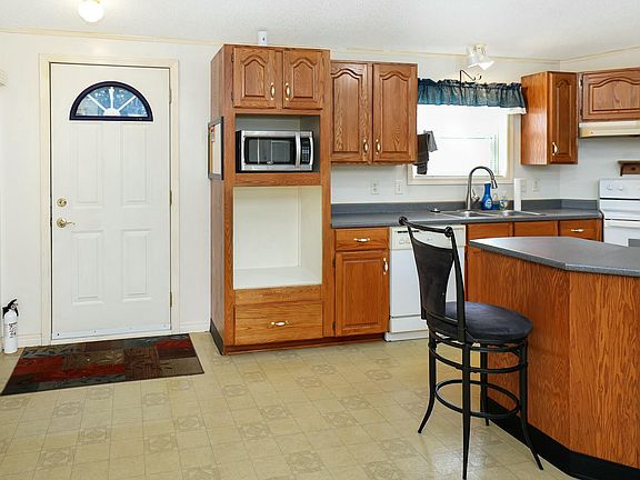 This beautifully maintained 2001 16' x 72' mobile home sits on a .30-acre lot and offers a perfect blend of comfort and convenience. The spacious kitchen is a standout feature, boasting abundant counter space, a center island, and large windows overlooking the deck, filling the space with natural light. High ceilings enhance the airy feel, while the inviting living room provides a cozy place to unwind. The primary bedroom includes a full bath, with an additional bedroom and bathroom for guests. A one-car garage keeps your vehicle protected during winter, and the large deck with a canopy is perfect for BBQs, entertaining, or simply relaxing.