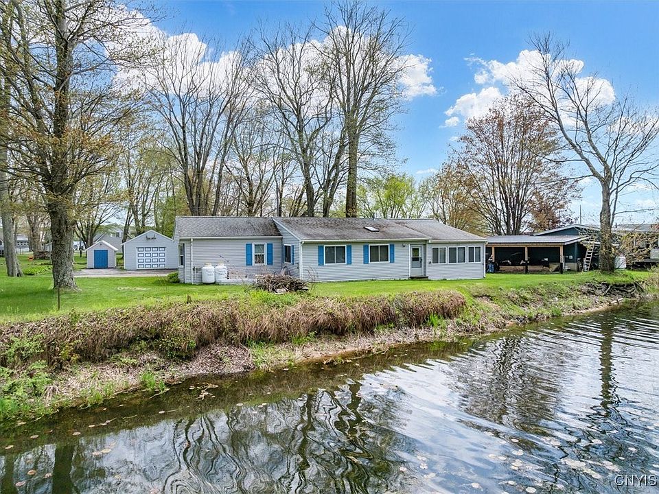 Welcome home to this adorable and spacious waterfront property!! Renovated property boasts an open concept, 3 bedrooms, 2 full baths, garage for all your toys, some furnishings, screened in room and so much more!!! Nestled in a channel right on North Pond which allows access to Lake Ontario!! The home is a single wide with an addition. Great for an investment opportunity or for your very own to enjoy!