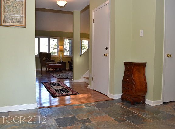 Surrounded by mountains and breathtaking 'tree house' views, this unit is tucked in at the end of a cul-de-sac. The entry foyer is beautifully presented with a stone tile floor in warm earth tones, which carries into the kitchen. The gorgeous eat-in kitchen offers granite countertops, high end stainless appliances and abundant counter space. Unwind in a gracious living room with cozy fireplace, volume ceiling and serene wooded views. The master suite has a wall of windows and large walk-in closet. The second bedroom offers 'tree house' views of rear woods leading down to a brook. A full basement offers great potential for another level of living with sliding glass doors to a patio. The updates have been done for you--kitchen, powder room, furnace, central air, hot water heater, hardwood floors, windows and roof. Residents enjoy walking trails, club house, tennis and basketball courts, pool, playground and PUD ownership which gives homeowners more control over their unit. - Basement: FULL, UNFINISHED