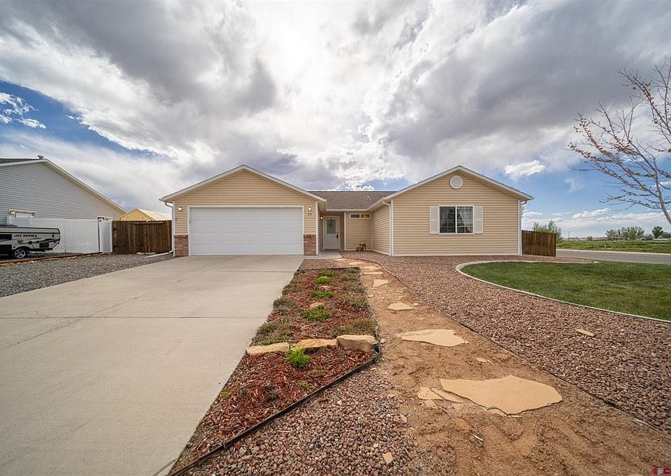 Excellent Condition 4-Bedroom Home on a Beautiful Corner Lot with RV Parking! Convenient and peaceful location just minutes east of town, this move-in ready delight delivers functionality and versatility. A tiled entryway greets you, leading into an open concept floor plan with a vaulted ceiling. The home has been thoroughly cared for, has updated windows, lighting, paint, and a newer water heater. Stepping into the backyard, you are greeted with stunning views of Black Canyon National Park framed by a beautiful pergola wrapped in grapevines. Enjoy tranquility in this fully fenced oasis surrounded by strawberries, blueberries, raspberries, apples, cherries and blackberries. A large side yard provides generous room for an RV, trailer or extra toys and is secured behind a gated fence. Secure a Solid Hedge Against Inflation With Steady Rental Income, Or Settle In and Enjoy This Gem Yourself; Take a Tour Today!