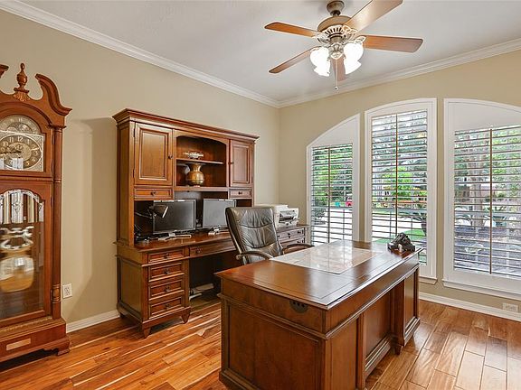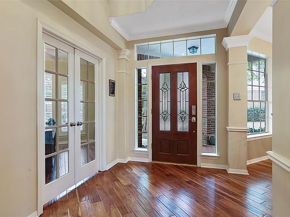 Nestled in the cul-de-sac on a large lot with pool, spa, gazebo and still tons of yard space for kids or pets to enjoy in the very popular Alden Bridge neighborhood of Greenvine* Biking distance to Buckalew Elem and Mitchell Intermediate schools* Roof replaced in Feb '19* Natural light abounds in this home & showcases the Acacia grooved hardwood floors have been installed downstairs, on stairs and upstairs hallway* Kitchen was updated in '08 and bathrooms updated between '08-'18* Wonderfully designed Ikea master closet installed in '17* Four secondary bedrooms, a gameroom and 2 full baths are upstairs while the study, formal dining, kitchen/breakfast, family room and master are on the first floor* Aqualink pool control is by the back door* The backyard gazebo is screened for poolside enjoyment* Near Alden Bridge Village Center and parks, a lovely area to live in*