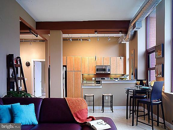 An intelligent short OR long term housing option in Baltimore City ...A newer one level loft condominuim at the award winning Rombro Lofts - 22 South Howard Street at Lombard at Baltimore's VIBRANT westside. This loft is impeccably maintained. Offering 1348 sq. ft. 2 separate and fully private bedrooms with baths, Soaring 12 ft. ceiling, Tremendous natural light from eastern exposure wall of windows at the OPEN living room, bamboo wood floors throughout and exposed duct work evokes a comfortable industrial feel. The city skyline views are outstanding - especially at night! Fully fitted granite and stainless steel kitchen with dishwasher & microwave. Laundry in the unit. Two flat screen televisions and high speed internet - TRULY a SPECIAL space for those seeking the urbane and unique - Secure Parking (1 un assigned space) in adjacent garage you can park on roof of garage and have DIRECT view of your vehicle! Gas & electric, cable and high speed internet -included - secure building with monitored access - VIBRANT neighborhood with HIPPODROME theater just around the corner and many eateries nearby - Starbucks around the corner .. Camden Yards just 2 blocks and the Inner Harbor just 3 blocks - On the light rail with direct BWI service at your door. MARC train to Washington DC just 2 blocks - for easy 45 min. commute - This unique living space represents the best Baltimore value for LONG of SHORT term housing