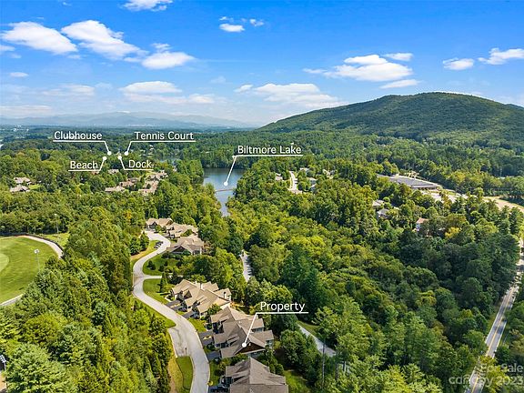 Rare find! End unit in gated Rockfish Cove in desirable Biltmore Lake. Lifestyle community with private 62 acre lake, miles of walking trails, non motorized boating, clubhouse, tennis/pickleball and basketball courts and more! Move-in ready home loaded with upgrades with open floorplan, 9'+ and cathedral ceilings, stone gas FP and year round views! Main level primary suite with walk in closet plus en suite full bath with double sinks, walk in tiled shower and garden tub. Open kitchen with professionally painted White kitchen cabinets, Granite countertops, stainless appliance package and eat in bar. 2 guest bedrooms on lower level plus office/den on main level. On site level parking plus 2 car garage and plenty of guest parking at street. Townhomes are on a double culdesac street overlooking nature preserve at end of lake. Large covered porch, 2 rear decks with Trex flooring plus hot tub are ideal for entertaining. This place is immaculate and is the largest plan available!!