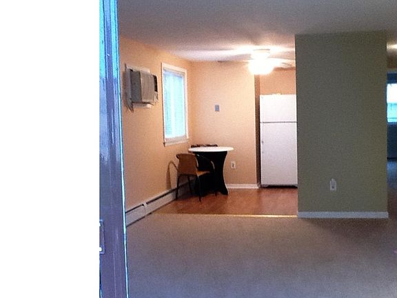 A clean 2 Bed Rooms, 1 Bath Room, large living room with nice view balcony Condo in quiet area, 1 car garage, near bus stop and train station. Window AC Hot water heating baseboard,