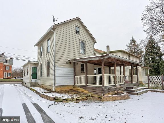 Great location in Brownstown, close to US- 222. Large, covered composit back deck & nice paver patio. Off street parking and detached garage with large attached workshop and dog kennel. Spacious eat-in kitchen, and lots of original decorative woodwork.