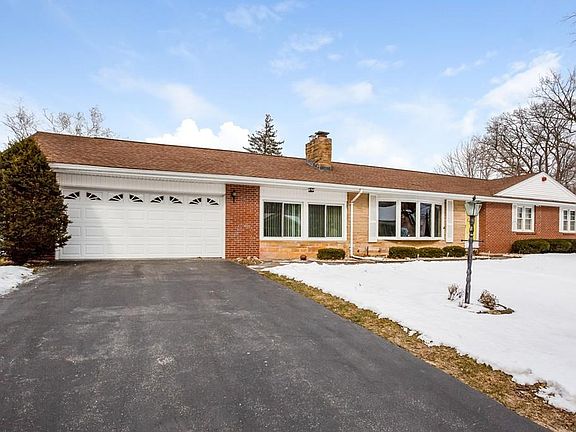 Attractive brick/stone sixteen acres ranch. Well cared for home with 7 rooms, 3 bedrooms, 2 full baths (one is a master bath). Two car garage. Partially finished walkout basement has steal beam construction and a huge family room. There is a dry bar and built in shelving, large walk-in cedar closet, and laundry area with sink, washer and dryer. Newer gas furnace and hot water heater. Central Air. Living room with bay window/window seat and fireplace with pellet stove inserted. Separate dining room off living room next to kitchen. Fully applianced kitchen with new flooring, breakfast nook, and charming dutch door. Beautiful hardwood floors in living room, hall, and bedrooms. Den has ceiling fan, picture window, and wood burning fireplace and also has pipe for gas connection. Master bedroom has walk-in closet and updated master bath with roomy shower and glass doors. Large backyard with brick patio, garden area, and a gazebo. Lovely home near Veterans Memorial Golf Course.