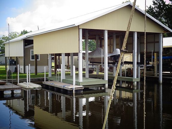 Mega Boathouse on this lot. 2 stalls with concrete posts Plus a large over the water deck. Floating dock. Park Model home on piers nestled under a extra high and large pole shed complete with lighting and fans.2 storage building. Lots of open parking for guests and boat trailers. There is a hook up for a guest RV to come and enjoy the Suwannee Life of Nature, Water, River and Gulf. Owners spared nothing when setting this great place on the water up. Come see today what this place offers.