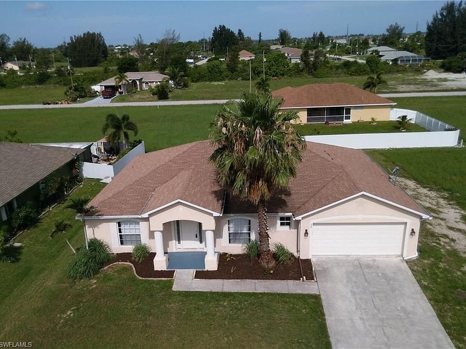 Come check out this beautiful home with almost 2,000 square feet of living area. As you enter this home you are greeted with a formal dining room area to the right and an open den/office to your left that can also be used as a formal living area. This home is ready to move in with 3 bedrooms, 2 baths, Den or Office, Family room area and a 2 car garage. This home features a nice spacious open floor plan with high vaulted ceilings in the living area. Kitchen has plenty of cabinets and counter space as well as a pantry and island. The master bath comes with dual sinks, separate shower and a jetted tub. Wood laminated flooring and tile recently installed throughout the home. There is a nice lanai for you to enjoy the Florida weather and sunsets, with plenty of room in the backyard for you to build your pool in the future. The location is also great, close to Pine Island Road commercial corridor with plenty of supermarkets, shopping and dining. Don't miss the opportunity to preview this home. Call today!