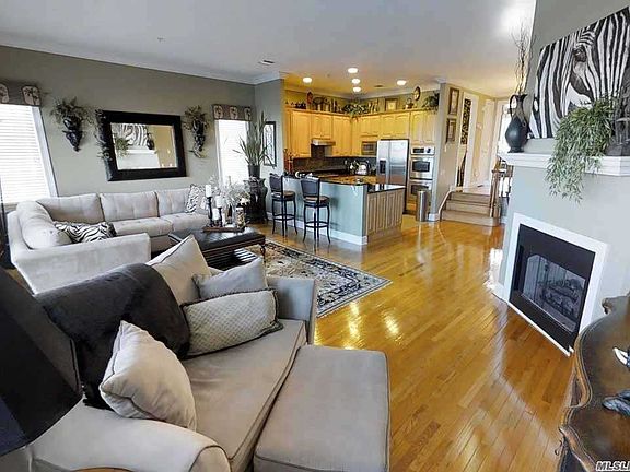 Babylon Village Waterfront Townhouse With Radiant Heat Thru-Out With Each Bedroom Having Its Own Full Bath & Oversized Closets. 1st Floor Living Room With Vaulted Ceiling, Gas Fpl & French Doors Leading To Balcony, Eat-In-Kitchen With Oversized Maple Cabinets, SS Appliances, Granite Counters. Formal Dining Room And Bedroom Used As Den With Full Bath. 2nd Floor Has 2 Br's Each With Own Bath Including the Master Bedroom Suite With Gas Fireplace, Large Walk-In Closet And French Doors Leading To The Balcony, 2 Zone Central Air Conditioning, Hardwood Floors Throughout, 2 Car Heated Garage, and 560 Sq' Of 5' High Storage Space. See Virtual 3D tour: https://my.matterport.com/show/?m=GZfyWovQtHh