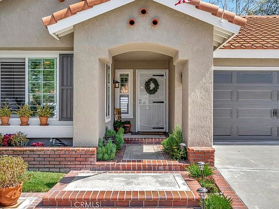 Watch the video!! This delightful single-story home is situated in the beautiful city of Rancho Santa Margarita nestled at the foot of the majestic Saddleback mountains. The quiet community of Vista Ladera is within walking distance to everything – parks, pools, shopping & restaurants! Simple elegance describes the beauty of this home. The spacious open floor plan, with many windows and doors, welcomes natural light throughout the entire home. Exquisite luxury plank vinyl flooring throughout. The beautifully remodeled kitchen includes soft-close, white shaker-style cabinetry, quartz countertops, extra-large stainless-steel sink with upgraded faucet, and stainless-steel appliances; the refrigerator is included! The beautiful herringbone backsplash completes this fabulous kitchen! Perfect for entertaining with the spacious dining area opening to the family room and to the beautifully appointed back yard. The family room is enhanced with shiplap siding, modern ceiling fan, beautiful wood burning fireplace with Chervon marble surround and custom wood mantle. The peaceful, spacious master bedroom is complimented with a volume ceiling, new modern ceiling fan, recessed LED can-lights, shiplap siding wall, and a sliding door opening to the backyard. Fully remodeled master bathroom with a spacious shower, white shaker-style cabinetry with quartz countertops, new fixtures, and lighting. Situated at the front of the home, the large secondary bedroom has complete privacy with light cascading through the windows and just steps away from the fully upgraded bathroom with new vanity with quartz countertop, new faucets, and lighting - perfect for guests and family. Relax in the private backyard appointed with new artificial turf, and a warm outdoor wood-burning fireplace. This home has been further improved with newer white vinyl dual-pane windows, French sliding doors, plantation shutters, and recessed LED can lighting throughout. Freshly painted interior and exterior completes this must-see home! Watch the video, come to the open house, and make this exceptional home your very own.