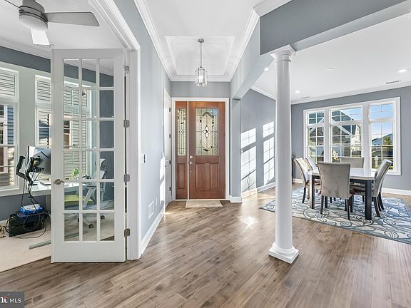 Discover this stunning residence nestled in the sought-after 55+ Community of Raajipo in Robbinsville! Boasting three bedrooms, three bathrooms, and a two-car garage with a den and loft 22 Samjan is the perfect turnkey home. Soaring ceilings, elegant wood laminate flooring, and decorative molding enhances the entire space. The formal dining and living rooms, separated by French doors, offer a sophisticated touch. The exquisite kitchen features high-end appliances, a magnificent center island with a breakfast bar, and ample countertop and cabinet space, complete with under-cabinet lighting. The breathtaking two-story living room showcases a gas fireplace adorned with brick molding that reaches the ceiling. The main floor also includes a spacious master suite with a luxurious bathroom featuring double sinks and a stylish stall shower. Additional bedrooms are generously sized with plenty of closet space. A den/sunroom complete this level. Upstairs, a loft overlooks the living room, and a massive finished attic provides extra storage or living space. Outside, enjoy the patio and a picturesque yard. This gem won't last long, make it yours today.