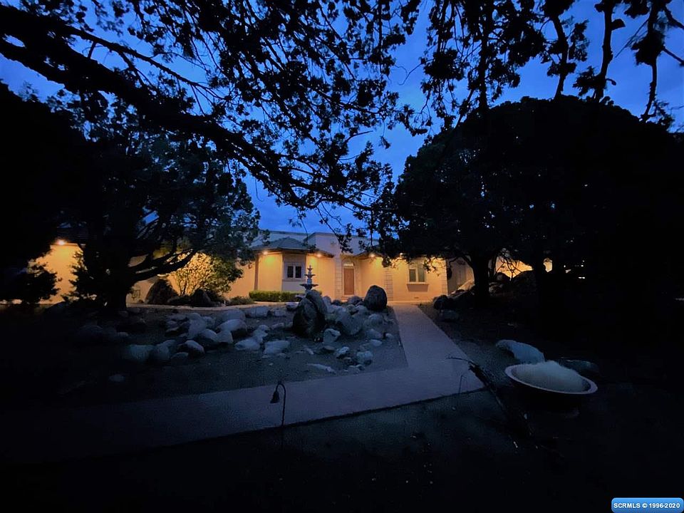 Sophisticated single level private sanctuary just minutes from town. This luxury custom homes sits in on 2.66 acres with spectacular views. Huge master suite includes fireplace along with French doors to private front patio. Sprawling entertaining spaces flow outside through several French door openings to to expansive back porch. Elegant living room with fireplace, and formal dining have a wall of window for lots of light. Kitchen flows into informal dining area then on through to sunny family room with wet bar. All new recessed LED lighting and fresh paint throughout. Gorgeous natural landscape surrounds. The new membrane roof has transferable BAC lifetime warranty. Herringbone pattern brick circle drive, entrance, walkways and patios have been re-done within the past year. Seller is offering finishing allowance not to exceed $30,000 for buyer to choose finishes/flooring for 2 baths and bedroom 2. OR Option 2: buyer can reduce purchase price $30,000 and complete themselves.