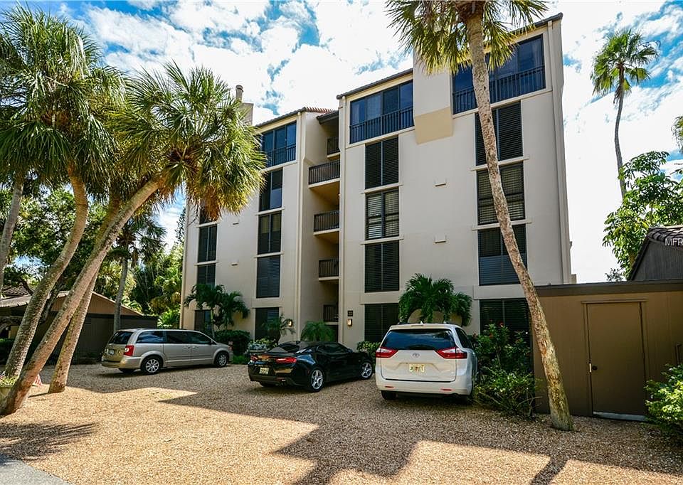 Adorable one bedroom one bath unit in highly desirable Sandy Cove community. Easy walk to fun, eclectic Siesta Village and world-renowned Siesta Beach. Compact with everything you need and less to clean, this third floor unit is accessed by elevator or stairs. Living/dining area opens to the deck overlooking beautiful grounds landscaped to ensure the greatest privacy. Kitchen includes white cabinets and appliances solid surface counter-tops and a closet pantry for great storage. The bedroom includes a large closet and en-suite bath. Plenty of closet space - in the foyer and off the hall are unusual in a condo of this size. All windows are equipped with shutters. Sandy Cove affords the ultimate Florida lifestyle. Amenities include private beach access, kayak launch, and fishing pier - all in a lush tropical setting. Dog friendly!