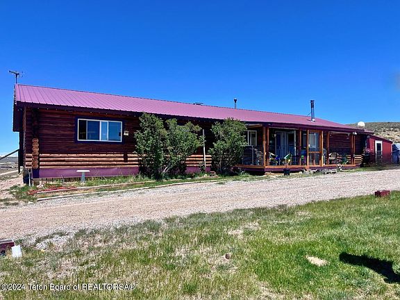 This property consists of a beautiful log home with three bedrooms and two full baths. The 10.5 acres with NO COVENANTS allows you to bring up to 10 horses. Build your dream shop and enjoy privacy, views, amazing sunsets and lots of local wildlife that come right up to your door! There is a fenced backyard for kids and pets. New flooring and fresh paint. Only 10 minutes to Pinedale. You'll enjoy a greenhouse and storage shed along with a loafing shed that you can use for hay or equipment. Check this property out!