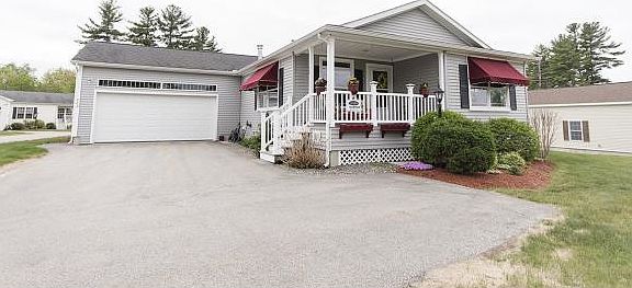 View this wonderful 2 bedroom 2 bath home located in Mill Pine Village. Sun-drenched 3 season room, spacious covered porch with lighted post, 2 car garage with direct entry and large crawl space for storage. Living room offers gas fireplace for those cool evenings. Beautiful French doors leading to den/office, Kitchen offers breakfast nook, lots of cabinet space,built in spice racks, island, and an additional scrub sink. Master with private bath and large walk-in closet. Whole house generator equals no worries when the power goes out. Monthly land lease includes landscaping, snow removal, weekly trash service, Community water & sewer, paved walking trails, on site postal station! Community Center includes gazebo, bocce courts, horse shoe pits, barbecue pits & picnic tables, & community gardens! A must see!!