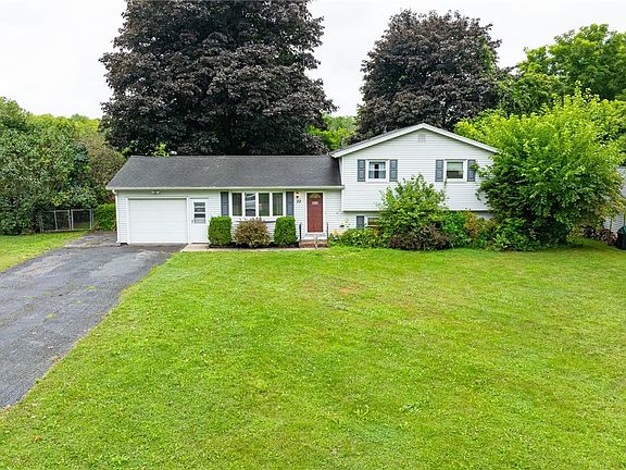 SPENCERPORT SCHOOLS with a PRIVATE LOT in a Quiet Neighborhood !! This home will NOT disappoint! Updated Kitchen with Tons of Custom Soft Close Cabinets, Gorgeous Tile Backsplash, Updated Flooring, & New Appliances! A Nest Thermostat to control the Central AC and Heat from Anywhere! Newer Hot Water Tank! Huge Living Space! Newer Vinyl Windows Throughout! Even thought there is no basement this home still provides a TON of Storage in the Large Crawl Space Under the Main House! The Private Backyard Includes a Deck directly off the Kitchen that leads to a Beautiful Above Ground Pool with a New Liner and Filter (2023), Fully Fenced in Yard, and Shed. The lot goes slightly past the fence line where the Fire Pit sits!