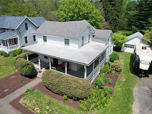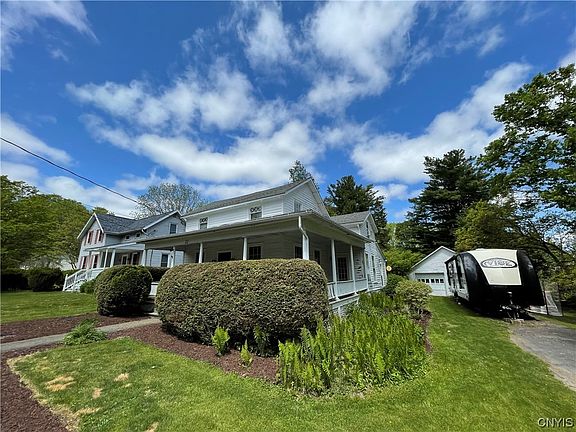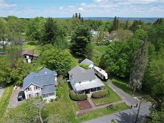 Classic 2 story village of Trumansburg 1870s home with wrap around front porch. Deep lot with mature plantings, two car garage. 3 bedroom, 2 bath; upstairs bath with radiant heat floors, Bright and open floor plan with updated kitchen that opens up into the family room. Hardwood floors with spruce floors in Master Bedroom with walk in closet. finished heated laundry/mudroom, large deck, patio with hot tub, and flower gardens. Fantastic!  Only two blocks from Main Street walking distance to all restaurants and the school. *House is scheduled to be painted at sellers expense.* Its not too late to pick your color! Open house  Sunday 5/21 12pm-3pm.
