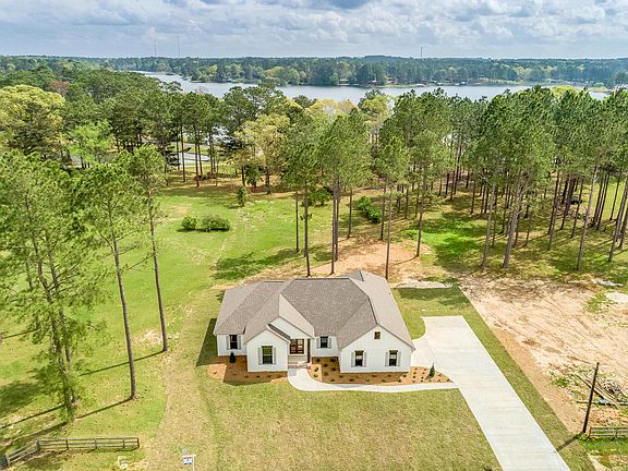 Unobstructed view of Lake Serene Main Lake without the waterfront price, but not in Lake Serene and does not have lake access. This place is special, you will not believe the setting on almost one acre, level with mature trees, and backs up to the Lake Serene walking trail. Richard Hiatt has hit it out of the park by offering a painted white brick home with dark windows, walk in pantry, four bedrooms, and two and 1/2 baths. The value in the master bathroom can not be overlooked with the tiled shower that can cost thousands of dollars! The back is a wall of windows so that you do not miss any of the beautiful view. There is a large patio area with outdoor kitchen, and plenty of space to build a matching shop, pergola, or pool. Ask about affordable lot in Lake Serene to give access!