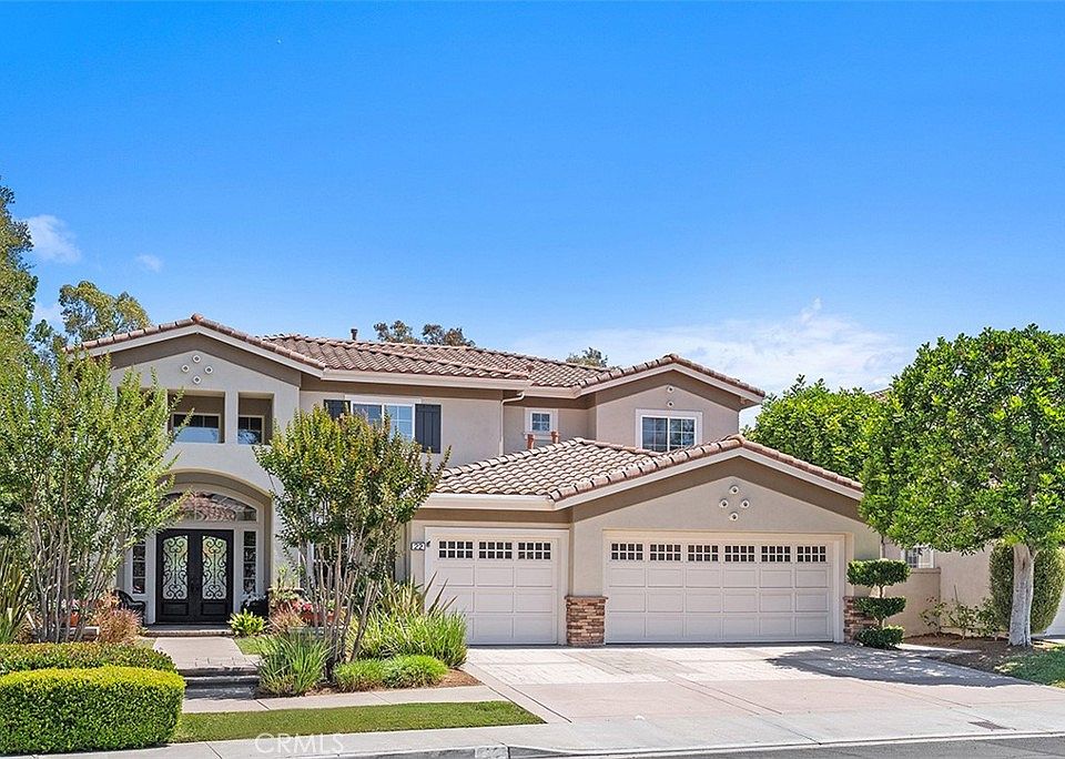 Welcome to 22 Serna, a stunning home in the desirable Paragon tract of Rancho Santa Margarita, nestled on a quiet cul-de-sac with breathtaking panoramic views that span the mountains down through the valley and out toward the ocean. Boasting 3,312 square feet, this beautifully maintained 4-bedroom, 4-bathroom residence offers an ideal layout and exceptional upgrades throughout. Curb appeal is immediate with its stately façade and manicured landscaping, setting the tone for what lies within. Step through the upgraded wrought iron front door into a thoughtfully designed floor plan where comfort meets elegance. The remodeled kitchen is a chef’s dream, featuring quartz countertops, custom cabinetry, and high-end stainless-steel appliances that opens to a spacious family room make entertaining a breeze. The downstairs also features a separate dining and living room and a versatile bedroom with adjacent remodeled bath offers flexible use as a guest suite, den, or home office (the bedroom does not currently have a closet). Completing the downstairs is a fully renovated laundry room that adds function and style. Upstairs features two additional secondary bedrooms that each include their own renovated ensuite baths, providing comfort and privacy for family or guests. The expansive primary suite spans the entire rear of the home, designed to capture the home’s stunning panoramic views. Begin in the private sitting area and transition into the spacious bedroom, complete with a luxurious ensuite bathroom boasting a dual vanity, generous walk-in closet with custom built-ins, and designer finishes. The backyard is your own private retreat showcasing a built-in BBQ island, covered patio with overhead heater, built-in fire pit, and lush, tranquil landscaping. Whether you’re hosting a lively gathering or enjoying a quiet evening under the stars, the space is designed for year-round enjoyment. Living in Rancho Santa Margarita means more than just owning a beautiful home—it’s about lifestyle. Residents enjoy access to resort-style amenities including community pools, tennis courts, scenic hiking and biking trails, serene parks, and family-friendly playgrounds. Located just 0.3 miles from an award-winning elementary school and close to shopping, dining, top-rated schools, and major freeways and toll roads, 22 Serna offers the perfect blend of convenience, community, and calm.