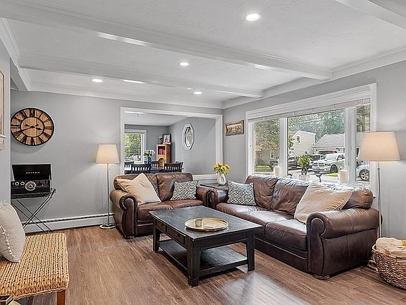 OFFER DEADLINE MONDAY 12 NOON 7/24. PLEASE MAKE OFFERS GOOD UNTIL 5PM This relocating owner hates to leave this immaculate and updated move-in ready home! An open and versatile floor plan consists of a fireplaced living room, dining room/mudroom, and granite and stainless kitchen that are all beautifully appointed with modern décor. Portable granite island remains. Two bedrooms and a full bath make one level living an option. Two additional bedrooms or home offices split the second level along with a skylighted laundry area. Fenced flat yard for pets and a large deck make outdoor entertaining fun. In addition to the garage with storage, there is a separate storage shed as well. Updates include the roof /windows/heating system 2017, Roth oil tank 2019, hot water 2015 . Be a part of a town with award winning schools, access to main highways/routes for commuters, shopping and restaurants, and hospitals and universities including Umass Hospital and Medical School!