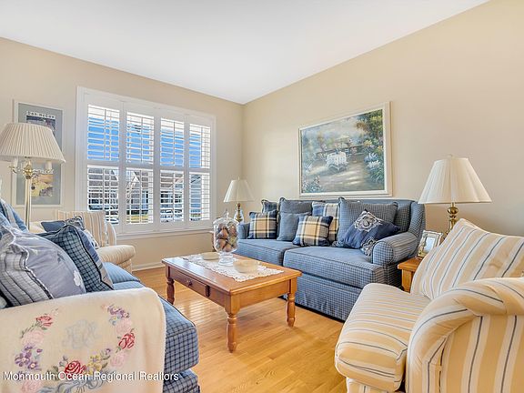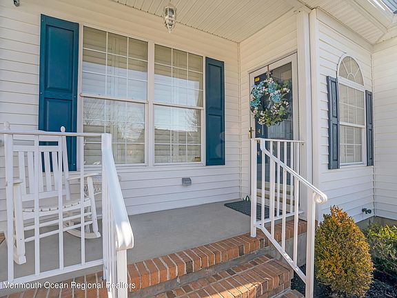 A truly beautiful ranch home located within Wedgewood Place in Brick Township. This charming home offers gleaming hardwood floors, custom plantation shutter style window treatments, a spacious floor plan, an updated kitchen, sliding doors, a full basement, newer appliances, 2 full bathrooms and 2 large bedrooms. Outside boosts plenty of character with an open front porch, shutters, an oversized driveway, a concrete patio and a deck with an awning... all completing the beauty of the exterior details of this home. Enjoy the Clubhouse with an inground pool, fitness room and so much more!