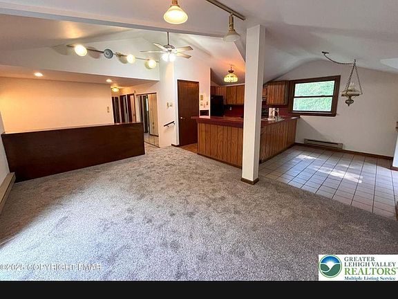 2 BR 1BA raised rancher in Jim Thorpe zip (2 mins from Exit 87 Jim Thorpe/Lake Harmony turnpike exit) with 2nd floor living. The property butts up to state game lands on two sides (back and right) and has new carpet and paint, and offers a large wrap around deck. Includes a two-car garage/storage/workshop space. Has washer/dryer, electric stove, refrigerator, dishwasher, garbage disposal, and electric baseboard heat. Trash included. Tenants' are responsible for electric, lawn, and snow removal.