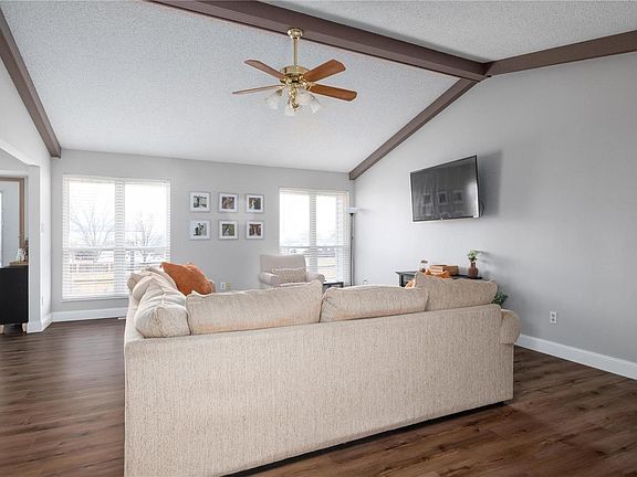 Warm & Welcoming Ranch in Oxford Estates! This gem will welcome you in from the front porch to the foyer with a lovely entryway. Wood beams with vaulted ceilings, loads of natural light and an open floor plan are perfect for entertaining. You will be impressed with the newer LVP flooring in a warm rail tie oak color throughout the main level. The kitchen has a clean, stylish look with white tops, gray cabinets, and textured backsplash. Dining-kitchen combo creates a natural room divider from the living to the kitchen areas. Dedicated laundry and open staircase also make this space feel larger. The center hall plan leads to the primary ensuite, walk in closet, and shower only bath. The other two bedrooms are ample space with slider closets and share a hall full bath. Outside you will find a new boards in the fenced backyard, patio with string lights, 2 yr roof, and 2 car garage. A FULL unfinished basement with storage options and workbench. All systems have been well kept.