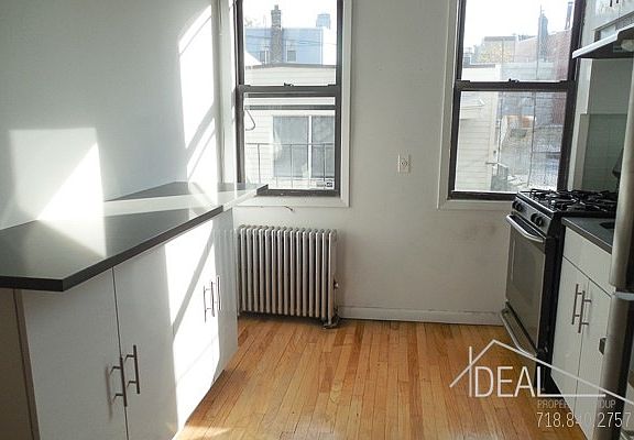 Lovely 1 BR residence with soaring ceilings, spacious eat-in kitchen, decorative fireplace. Bedroom with its own entrance from the building's hallway. The additional room is smaller (could serve as a pass-through bedroom, office space, walk-in closet). Four large windows bring in lots of natural light, hardwood floors throughout. The building also has a small shared courtyard for tenant's use. Just 3 blocks from the Lorimer Street L train and G train. Call today, This apartment won't last!NO FEE