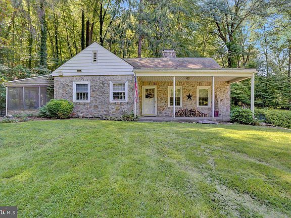 If you are looking for a home with some seclusion and a wooded setting, look no further! Situated on a 3 acre lot! This stone rancher has all the charm and beauty! Deep window sills and nature views! Inviting front porch to put your rocking chairs on and enjoy your morning coffee! This home has 2 bedrooms (possible 3), and 2 full baths. Lovely hardwood flooring throughout the first floor. Galley kitchen that flows to a formal dining room perfect for those holiday meals! Spacious living room with wood burning fireplace, main floor with two bedrooms and full bath. Walk up attic could be finished for another great space/bedroom! Finishing off the first floor is an enclosed screened in porch. Lower level has more living space with a finished daylight family room with another wood burning fireplace. Wait unit you see the bar room with custom handmade bar and shelving! So cool! Lower level also features a room with office space/built in cabinetry perfect if you work from home! A full bath with walk in shower in lower level as well! Side entry garage with workbench and utility room completes the lower level. Utilities include oil hot water heat and an on demand hot water heater. Central air is new in 2023. Some replacement windows throughout. Outside you will find a detached garage with additional carport and a chicken coop! This home truly has it all!