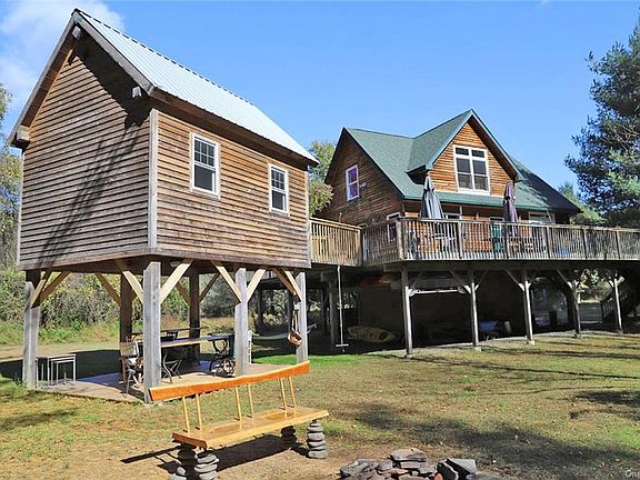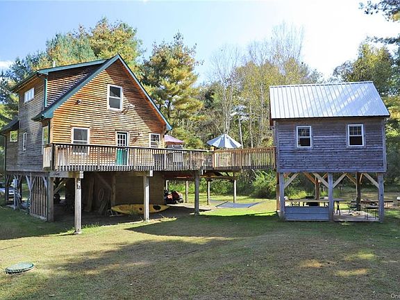 This custom contemporary with deeded Delaware River rights is a hidden gem. Located less than a mile from Callicoon, NY on the PA side of the Delaware, it is completely private. The home was built by an expert woodworker and is executed like fine furniture, with black locust floors, cherry beams, cherry stairs with ash spindles. The kitchen features a terracotta tile floor, granite counters, and stainless appliances. First floor has kitchen, living/dining, bedroom, full bath. Second-floor master. In-floor radiant provides even, efficient heat. Big wraparound deck leads to a lovely insulated guest space with exposed beams and a cherry ceiling. Living spaces are raised on locust posts -- well above the 100-year flood elevation, leaving covered storage & outdoor living space below. Nature lovers will appreciate the birds, bald eagles, and river denizens. Enjoy a leisurely stroll to the shops, restaurants, and farmer's market in Callicoon. Work from home with high-speed cable. Low PA tax.