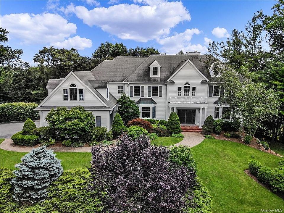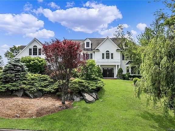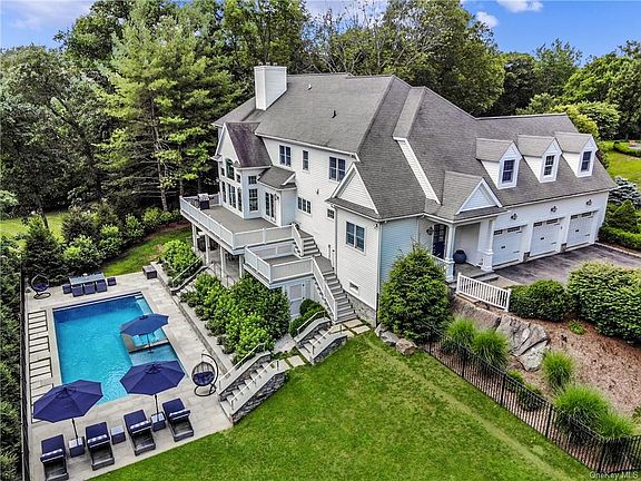 All I can say is WOW! Unique opportunity to own this dreamy custom built, modern, move-in ready colonial home with the perfect flow for entertainment both indoors and out! Sweeping 2 story marble foyer leads to an open dining room with extensive millwork, built-in window seat, formal living rm w/ marble fireplace, private double-door entry home office. The all-white beautiful kitchen w/ large center island, quartz countertops/backsplash, top of the-line appliances, 2 copper sinks has doors out to a bi-level deck w/ incredible views of gorgeous sunrises. The family room w/ exposed reclaimed wood beams, slate surround fireplace, floor to ceiling 2-story windows w/ motorized window treatments is amazing. 3 Bedrooms plus a large master suite with walk in his/hers closets, dressing area and a spacious master bath with views of the yard and pool and a great kids play space make the second level perfect. The walk out lower level is ideal w/ a playroom, gym, movie room, game room w/ wet bar, full bath and double french doors leading out to a backyard oasis which has it all! Newly built pool has self-contained spa, sun-shelf, auto-cover and operates on a UV system. Surrounding the pool is a large stone patio, extensive stone walls, landscaping and steps that lead to the covered living room area under the deck with a great large outdoor kitchen (built in grill, fridge, cabinetry) and outdoor TV. Perfect for entertaining this house is a rare gem!