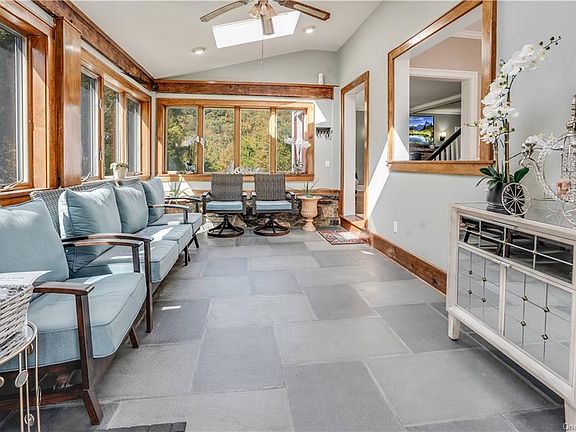 Enjoy modern and country lifestyle. Large entry foyer/sunroom with new blue stone floor, new hardwood floors, new recessed lighting, crown molding throughout, new sheetrock walls and ceilings, new insulation, new central heat/cooling system with 3 thermostats. Formal living room with fireplace to enjoy winter moments. 1st floor master suite w/full bathroom provides views. Upgraded kitchen with granite counter tops, dining room can accommodate large gatherings along with half bathroom and family room with view to the dramatic extra large irregular flag stone patio with steps of natural stone walls complements your rich private/elegant setting. 2nd floor has 3 bedrooms, brand new full bathroom with glass door shower. Huge basement with washer and dryer perfect for additional storage. Wide beautiful breezeway connects to 2 car garage. New driveway w/Belgium blocks. Lot size 2.2 acres with new vinyl fence and green giant pines giving you serenity and privacy.