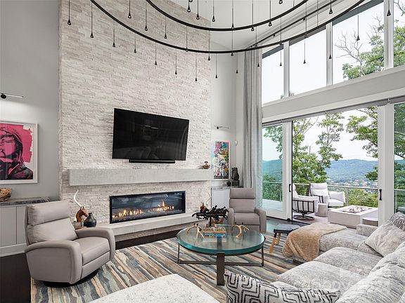 Perched high above The Cliffs at Walnut Cove, this luxurious home offers an exceptional mountain paradise. Indulge in mesmerizing, layered, long-range mountain views, framed by soaring ceilings, glass and stone finishes, and stunning lighting at every turn. Revel in the panoramic vistas of the beautifully lush Walnut Valley and distant Blue Ridge Parkway. Refined elegance defines the interior, featuring a magnificent great room, open kitchen with a commanding island, private home office, and a main level primary suite with a steam shower and dry sauna. Relax on two levels of screened porches and decks, or unwind in the hot tub while savoring the majestic views. The terrace level provides ample space for play, guests, and work, complete with a bar kitchen, billiards and game space, indoor/outdoor dining, laundry, plus fenced level yard space for your pets. This exquisite home offers the best of Walnut Cove living, ensuring you’ll want for nothing. Membership in The Cliffs is available.