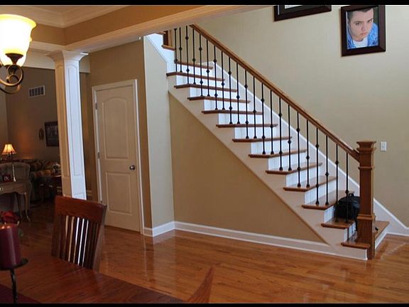 A MUST SEE! This gorgeous 4 bed, 2 1/2 bath home built by Eskew home and construction in 2008 has all the extras. It boasts beautiful hardwood floors, upgraded poplar trim with crown molding throughout. You enter the home to see a beautiful stairway and an open floor plan flowing from the foyer into the formal dining room and then the 2 story great room with amazing views of this nearly 1/2 acre lot. The kitchen has wonderful cabinetry and finishes.This home has the option of having a 5th bedroom as well, or can be used for an additional TV room or office. The basement has already been framed for an additional bed, full bath, family room and an extra room great for a home theater. Additional rooms for storage in the basement as well. Special features include 2 HVAC units, water softener and more! Peaceful setting...Great location!