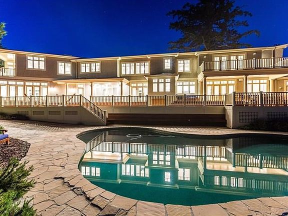 Hamptons transitional in Woodside, This exceptional hilltop residence features dramatic bay views from Mt. Diablo to San Jose and sweeping panoramas to the south and west. The Hamptons-inspired shingle home has the ambience of a resort retreat and the privacy that comes with being adjacent to 5000+ acres of Open Space. Minutes from the heart of the Peninsula and Silicon Valley, this sprawling 7300 square foot home features generous living and entertaining spaces, both indoors and out-of-doors. The open floor plan with soaring ceilings and walls of glass is infused with light, while all rooms take in the stunning views and clean air. Comprehensively renovated in 2016, this home has meticulous craftsmanship and beautiful details through-out with fine woodwork, cabinetry, and exceptional use of stone. There are 5 bedrooms and 4.5 bathrooms including a stunning master wing with windows on four sides and a private master deck. The outdoor spaces include a pool and patio as well as 4000~ square feet of ipe deck, covered porch with fireplace, outdoor kitchen, and lovely native landscaping. The end of road privacy is further enhanced by the private trail access from your front door to Open Space.