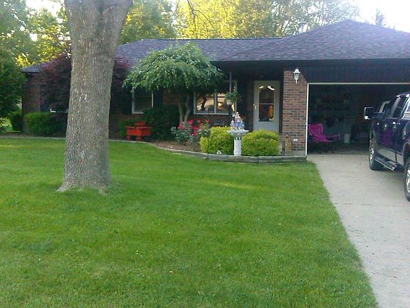 Very well maintained brick ranch home in establish neighborhood on nearly 1/2 acre with many recent updates! New HVAC '11, Roof '09, Kitchen remodel '09, Floors '09, Garage Door '09, plus much more! Very open layout with vaulted ceilings and a masonry fireplace! You;ll love the sitting on the covered back porch enjoying your covered huge back yard with an enormous mini barn/workshop and garden! This is the home you have been looking for! See it today!