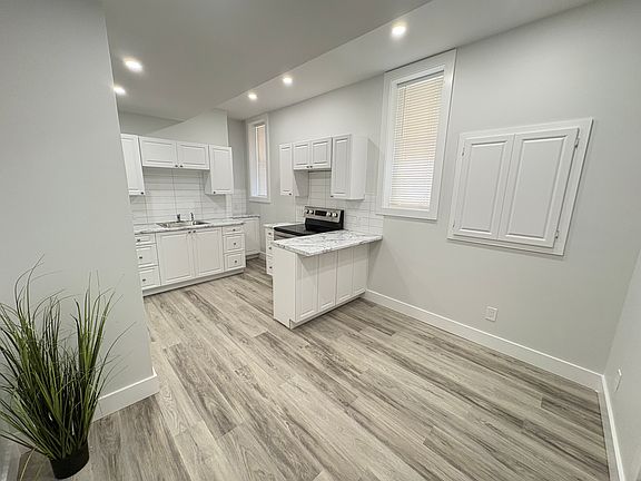 Be the first to live in this fully renovated luxury studio apartment located on the main floor of a beautifully restored coach house. From the moment you walk in, you'll feel right at home. The bright, open-concept kitchen offers plenty of cupboard and counter space and features a peninsula-style island with a breakfast bar, perfect for dining or entertaining. The layout provides flexibility to create a cozy sitting area or a dining nook, depending on your lifestyle.