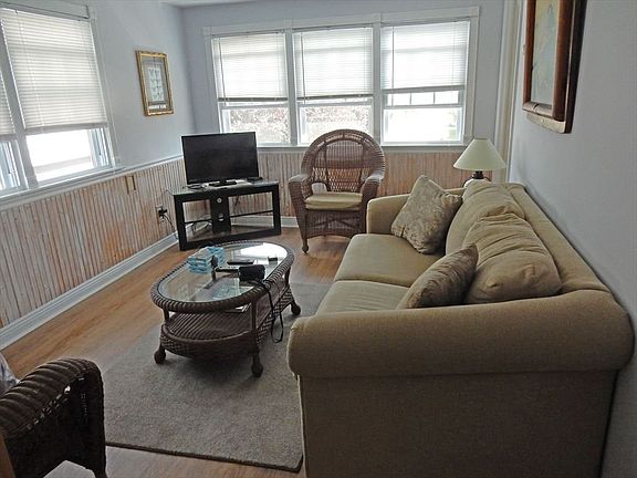 For showing appointments please call appointment line. Current owner has used the property as an owners unit, an efficiency unit and two, one bedroom apartments. Extensive repeat tenant history. The owner uses the first floor unit periodically during winter months and keeps all systems operational. The efficiency unit and the two apartments have the water and plumbing drained from October until sometime in April. Unit D - first floor owners unit consists of living room, dining room, kitchen, two bedrooms, two baths, front porch, breezeway and attached garage. During Summer of 2014, this unit was rented from May 15 to October 1st for $16,000.00. Unit C - First floor efficiency unit - rear and side entrance - consists of a living room/bedroom combination, a full kitchen, bath w/shower, and a rear deck. Has been used as a seasonal rental. Rental rate $6750.00. Unit B - second floor ocean side unit -rental rate $600.00 to $1200.00 per week. Consists of living room, kitchen, bedroom, bath, and private deck. Unit A - second floor north side unit- rented to many repeat tenants for years. Rental rate $600 to $1200 depending on time frame. Consists of living room, full kitchen, bedroom, bath, and private deck. Dogs permitted for additional fees. Shared outside hot cold enclosed shower. Three rental units have window/wall air conditioning units. The first floor main owner's unit has central air conditioning. Owner unit has a gas floor furnace. Efficiency unit has electric baseboard heat. Unit B has electric baseboard heat. Unit A has a gas floor furnace that has not been in service for 25 years or longer. This furnace will be conveyed in "as is condition".