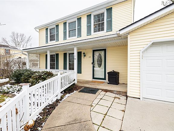 Welcome to 22 Stone Fence Circle, nestled on a charming cul-de-sac! This 3-bedroom, 3-bath home boasts a variety of modern updates. Spacious eat-in kitchen adorned with new Quartz countertops (2020) and abundant cabinetry. Equipped with all appliances, including built-in double ovens and a French door refrigerator, this kitchen is a culinary enthusiast's dream. Unwind in the vaulted family room, complete with a three-sided gas fireplace and a built-in window seat offering serene views of the private backyard – a lush expanse bordered by 50+ acres of forever wild, wooded town land. Upstairs awaits a retreat-like primary bedroom featuring a walk-in closet and a private en-suite, stand-up shower, large jetted tub, and a double vanity. Two additional well-proportioned bedrooms complete the upper level. The lower level unveils a sizable finished area with glass block windows, perfect for versatile use. . Recent updates ensure peace of mind, with a new roof in 2022, a furnace and water heater installed in 2022, and a pool pump and liner replaced in 2023. The brand new driveway was just installed in September 2023. Delayed negotiations are scheduled until Tuesday, February 6th, at 12:00.