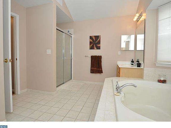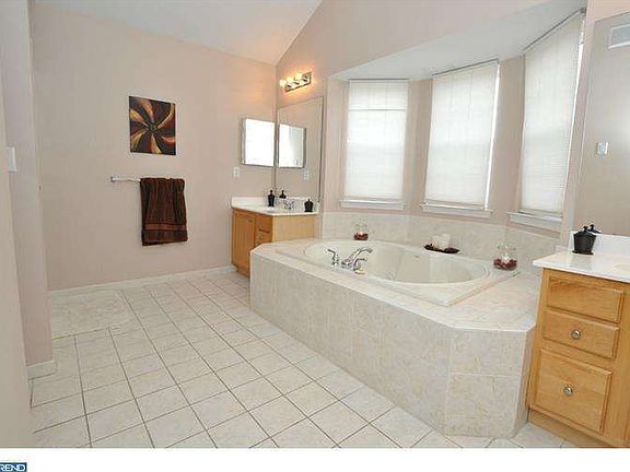 WELCOME HOME to this well-maintained 4 Bedroom, 2.5 Bathroom Colonial in "The Grande at Rancocas Creek"! Beautiful brazilian cherry hardwood flooring in the Living, Dining, and Family Rooms, neutrally painted, upgraded lighting, and 9 ft. ceilings featured throughout. The expanded Kitchen has 42" maple cabinets with corian counters and a Breakfast area that has a slider to the private EP Henry paved patio and fenced yard. The Master Suite offers a tray ceiling, 2 walk-in closets and a luxurious master bath with a Jacuzzi tub and separate sinks with maple cabinets. There are 3 additional Bedrooms with plenty of space. Downstairs you are presented with a full Finished Basement with laminate flooring abundance of light from the windows. Conveniently located near ball fields, shopping, I-295, NJ Turnpike, Rt. 130 and Philadelphia! Make your appointment today!