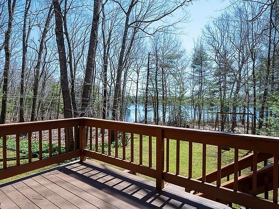 Welcome home to this unique, custom built post & beam home located on Lovewell Pond in Hubbardston! Situated on a 15 Acre lot with 1,080 Ft of Waterfront on a beautiful, privately maintained 83 acre pond. The tranquility of the glistening water brings peacefulness to the property ideal for a work-from home environment or year round calming vibes. This home allows brilliant natural light to pour into every room with it's oversized Marvin Windows. The main living & dining space offer an open floor plan complete with cathedral ceilings allowing for endless design creativity. 1st floor consists of gleaming 3 width Oak Floors, an incredible Granite Gas Fireplace, Laundry Room, Eat-in Kitchen, Office, and Main Bdrm Suite! With cathedral ceilings in the main bedroom, walk-in cedar closet, private deck & en suite bath w/jacuzzi & shower- all on one floor! 2 addtnl Beds Up & 2nd flr full bath- all offering cathedral ceilings & skylights too! OH Sun. 4/28 1-3.Offer DL extended to- 4/29 by 10 AM.