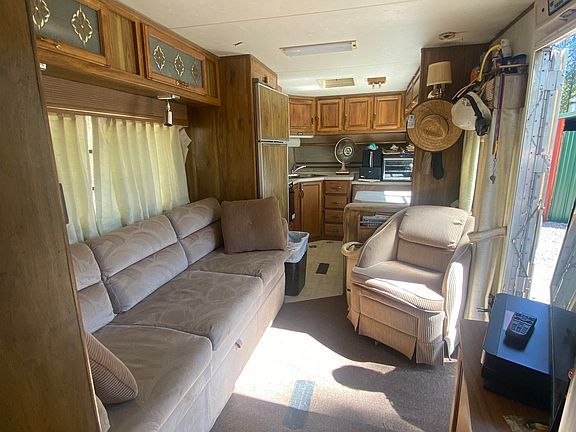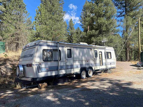 GREAT mountain get away for the snowbirds, hunters or just weekend get away's. Located on 1.874 acres with a 33FT Holiday Rambler Aluma Lite XL which sleeps four comfortably. There are two 18 X 20 carports on the property one is closed in for storage. There is a water holding tank and 18 solar panels with shed that has power source for the panels. Property has electric pole and meter on the property and has access to hookup to a water association.