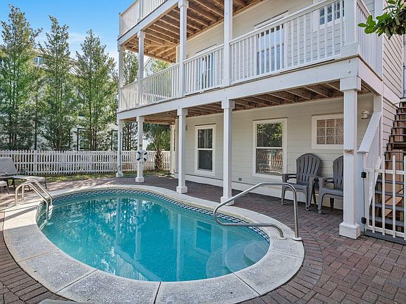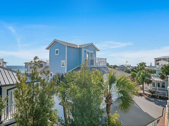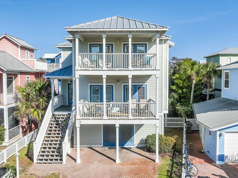 This quintessential beach house enjoys lovely breezes and views of the Gulf of Mexico sitting just three houses back from the beach. Nestled in the gated neighborhood of Sunrise Beach, on the south side of 30A, you have easy access to the beach with two beach walkovers maintained by the HOA. The home boasts a private pool and charming backyard for lounging after walking the beach. You'll find a huge gaming area on the first floor complete with air hockey & ping pong tables as well as bunks and a guest bedroom and bath. The built-in trundle bunks make into four beds. The main living area with fireplace and kitchen are on the second floor for best Gulf views from the balcony, and the guest bedroom on that floor also has a balcony and adjoining bathroom. The top floor showcases the primary suite with fireplace and balcony for best Gulf views. There is an additional queen bedroom on the third floor with both balcony and bathroom. Many new additions were made to the house in 2019:
