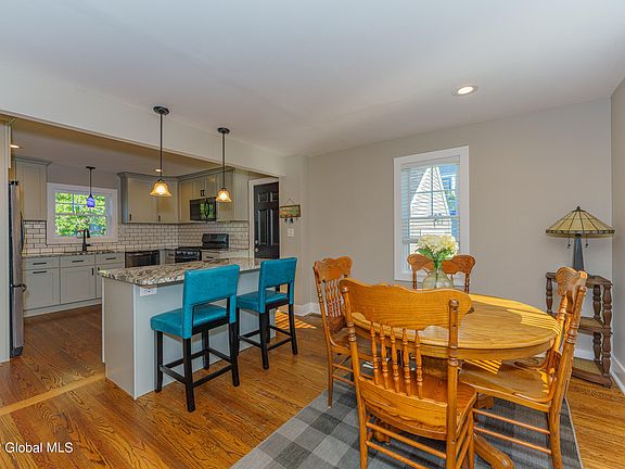 Well maintained and updated cape in the North Colonie school district. Home has open, modern kitchen w/ subway tile, island and plenty of room to cook/entertain. 3 bedrooms ( 1st floor one used as office currently. ) Living room with recessed lighting, dining area off of kitchen and beautiful walk in shower in 1st flr full bath. Spacious br's upstairs, with full bath. Breezeway with built in storage, 1 car garage, and large, open fenced yard. Home has central air, some new ductwork , convenient location and low taxes.