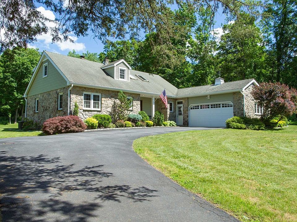 Charming country cape on 1.4 level acres. Loaded with character, this 4/5 bedroom 3.5 bath home has a lot to offer. Living room with hardwood floors, built ins and stone fireplace set the tone for this very special home. There is a first floor bedroom and den along with 1.5 baths. Spacious family room with vaulted ceiling. The kitchen has been updated with granite counters, tiled back splash and under cabinet lighting. There is also a sun room with sliders opening up to the 61 foot blue stone patio. Upstairs you will find the master bedroom suite along with 2 other bedrooms. Plenty of storage throughout. The house has 6 inch gutters and a 12 x 20 shed complete with electric and running water. There is a generator hook up, Unico heating system. Recent updates include the windows,siding and boiler. Entertain inside or out. A great place to call home.