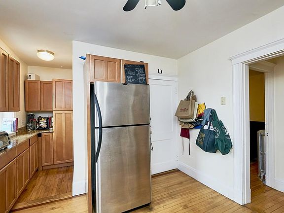 Wonderful opportunity to own a two bedroom condo tucked away on a dead-end street in the heart of Roslindale Village! Steps to commuter rail, bus lines, shops and restaurants. Offers private front and rear porches, a renovated kitchen with plentiful cabinets, granite counters and stainless steel appliances, hardwood floors, natural light and views of the Blue Hills. Bath with claw foot tub awaits your personal upgrading. Private storage room and new common laundry in basement. Fenced yard. Public parking in neighboring lot or permitted on-street resident parking. Pet friendly. Tenanted through August 31, 2019.