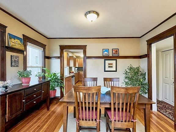 Stylish penthouse retreat on a quiet dead-end street overlooking Roslindale Village with distant views of the Blue Hills. Steps to commuter rail, bus lines, shops and restaurants. Offers private front and rear porches, renovated kitchen with abundant cabinets, granite counters, SS appliances, renovated bath with heated tile floor. Warm natural woodwork in open living/dining area. Well appointed one bedroom with bonus office space. Common laundry and private storage room in basement. Fenced yard. Pet friendly. Ample parking in neighboring lot and on-street permit parking for residents. Welcome to the heart of Roslindale!